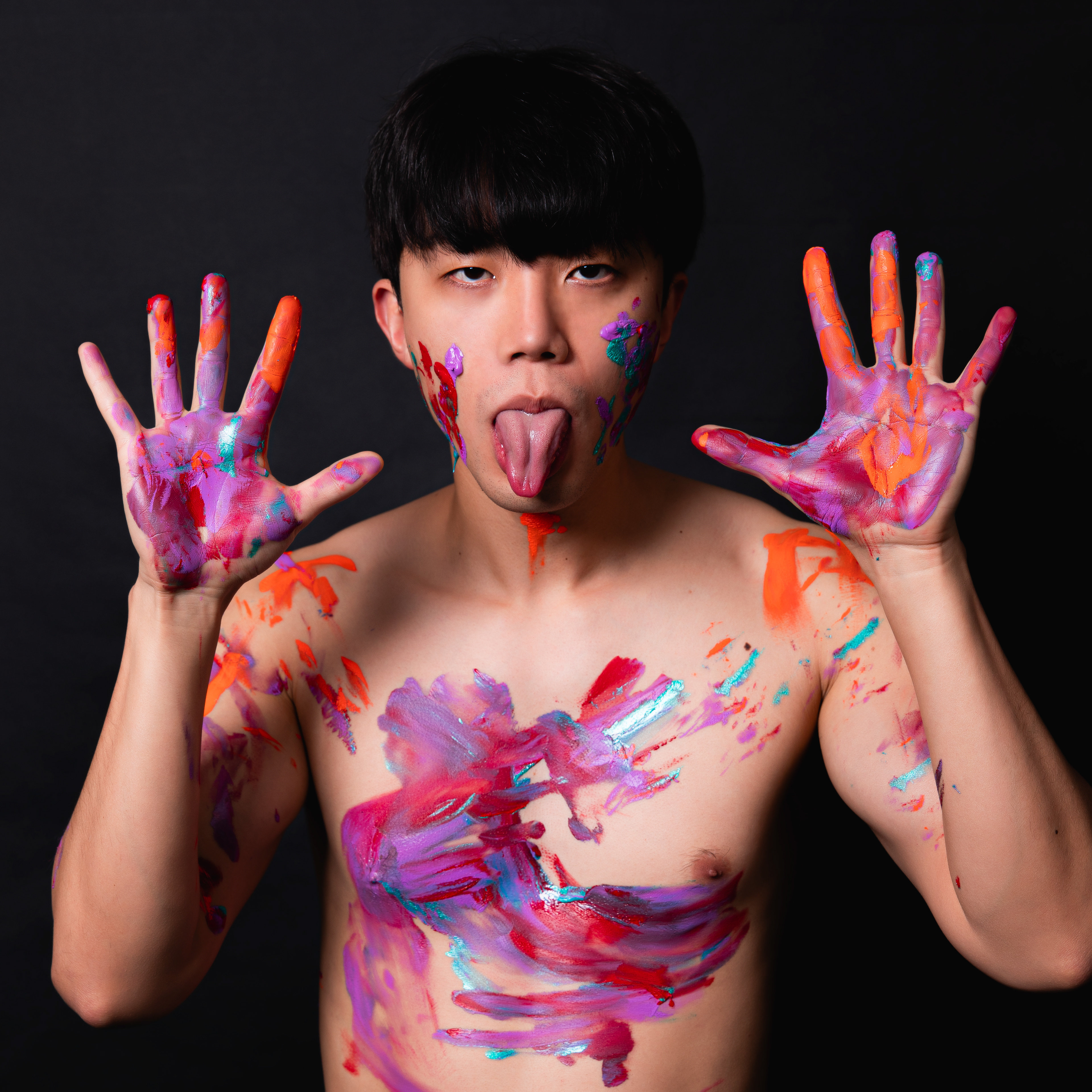 모델분은 본인이 어떤 모습인지에 따라 형용사 두 개를 생각해서 대비한 모습을 표현한 작업입니다.